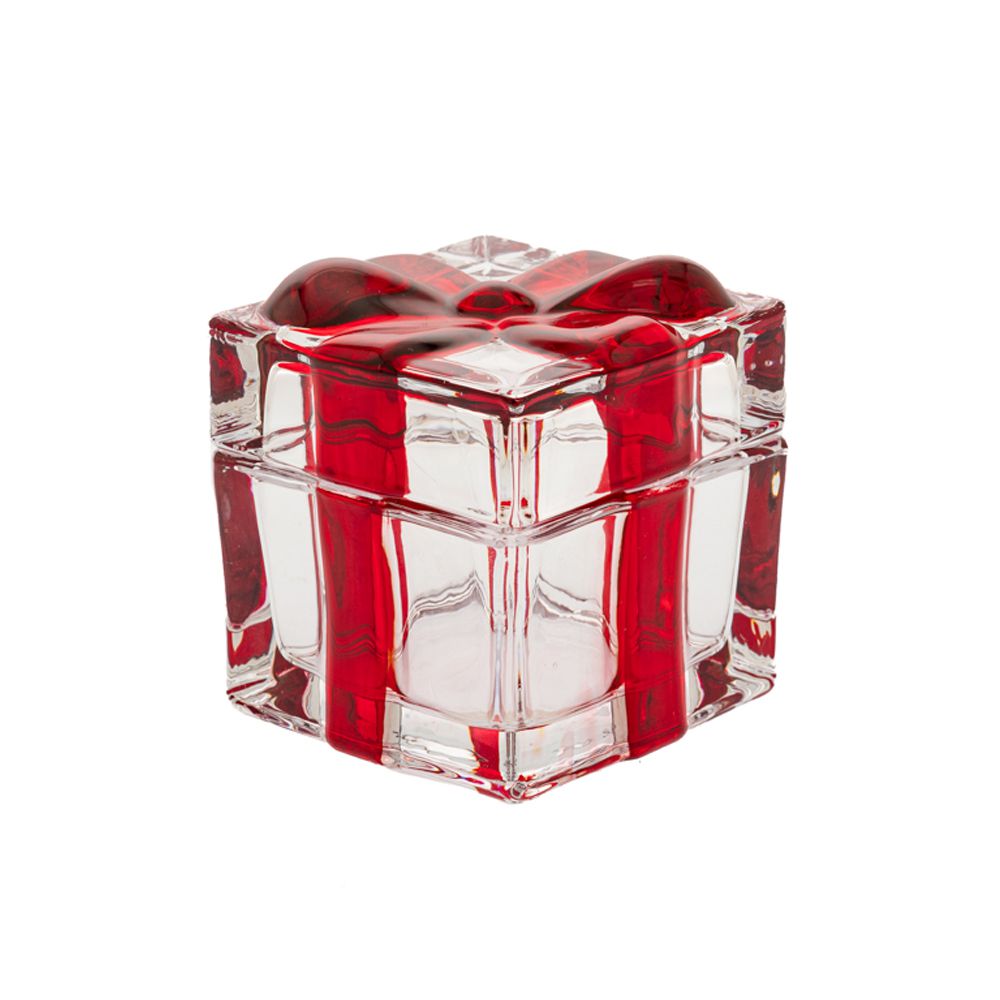 ΓΥΑΛΙΝΗ ΤΕΤΡΑΓΩΝΗ ΜΠΙΣΚΟΤΙΕΡΑ ΜΕ ΚΟΚΚΙΝΗ ΚΟΡΔΕΛΑ ΣΕ ΣΧΗΜΑ ΔΩΡΟΥ 8.5Χ8.5Χ9ΕΚ