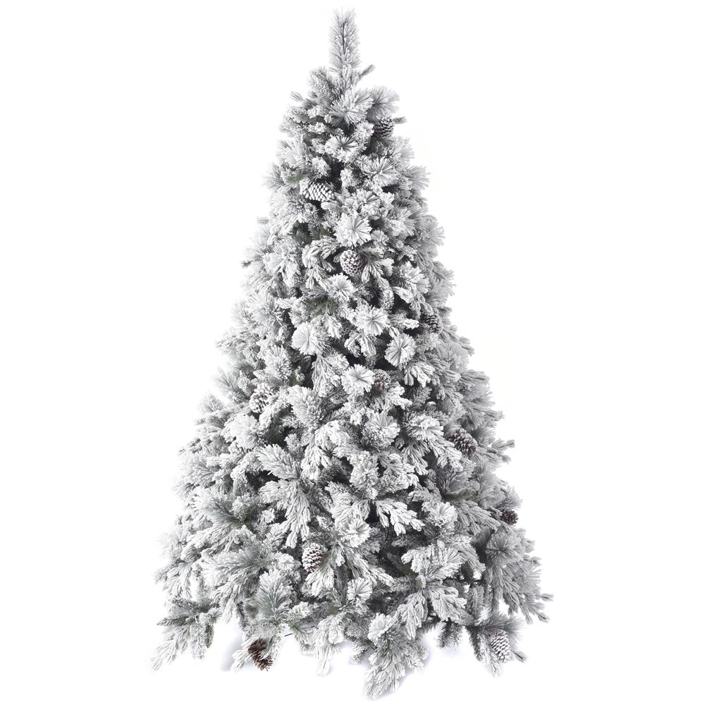 Δένδρο ALASKA χιονισμένο με κουκουνάρια. Υψος 1.50 μέτρα και διάμετρος βάσης 1 μέτρο. Υλικό 45% plastic και 55% pvc. Εχει συνολικά 1066 tips. Εύκολη συναρμολόγηση τύπου ομπρέλα και μεταιλλη βάση.