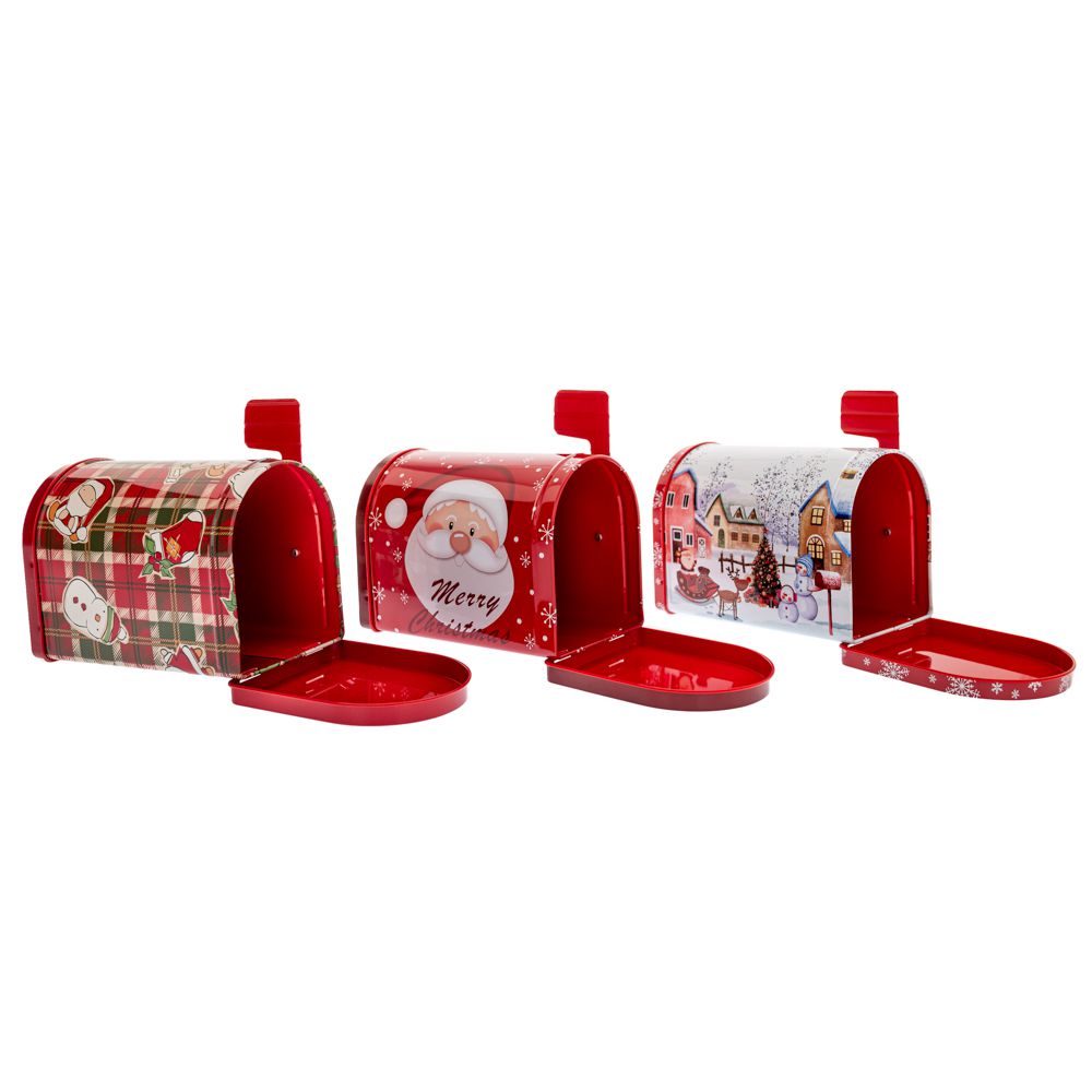 ΚΟΚΚΙΝΟ ΜΕΤΑΛΛΙΚΟ ΚΟΥΤΙ ΜΕ ΧΡΙΣΤΟΥΓΕΝΝΙΑΤΙΚΟ ΦΟΝΤΟ 13Χ8Χ9,5ΕΚ 3 ΣΧΕΔΙΑ ποσότητα