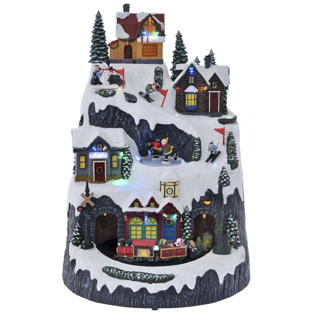 Χριστουγεννιάτικο φωτιζόμενο χωριό με τραινάκι που γυρνάει γύρω-γύρω. Εχει φως ,κίνηση και μουσική με 8 τραγούδια. Η μουσική έχει κουμπί On/Off.