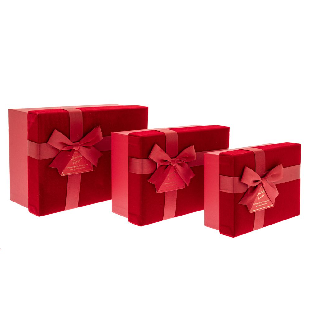 ΣΕΤ 3 ΚΟΚΚΙΝΟ ΒΕΛΟΥΔΙΝΟ ΚΟΥΤΙ ΔΩΡΟΥ ΜΕ ΦΙΟΓΚΟ 22Χ15,5Χ9 19,5Χ13,5Χ7,5 17Χ12Χ6 ΕΚ ποσότητα