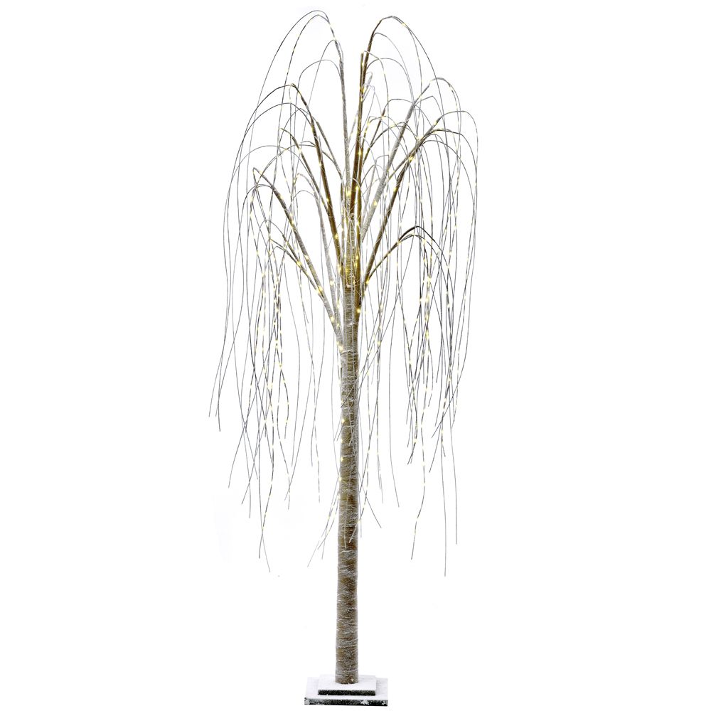 Δένδρο ιτιά με χάρτινο ελαφρώς εύκαμπτο κορμό 180εκ και 500 led λαμπάκια λευκού σταθερού φωτισμού. Ο κορμός του δένδρου είναι χιονισμένο καφέ χρωμα. Λειτουργεί με ρεύμα.