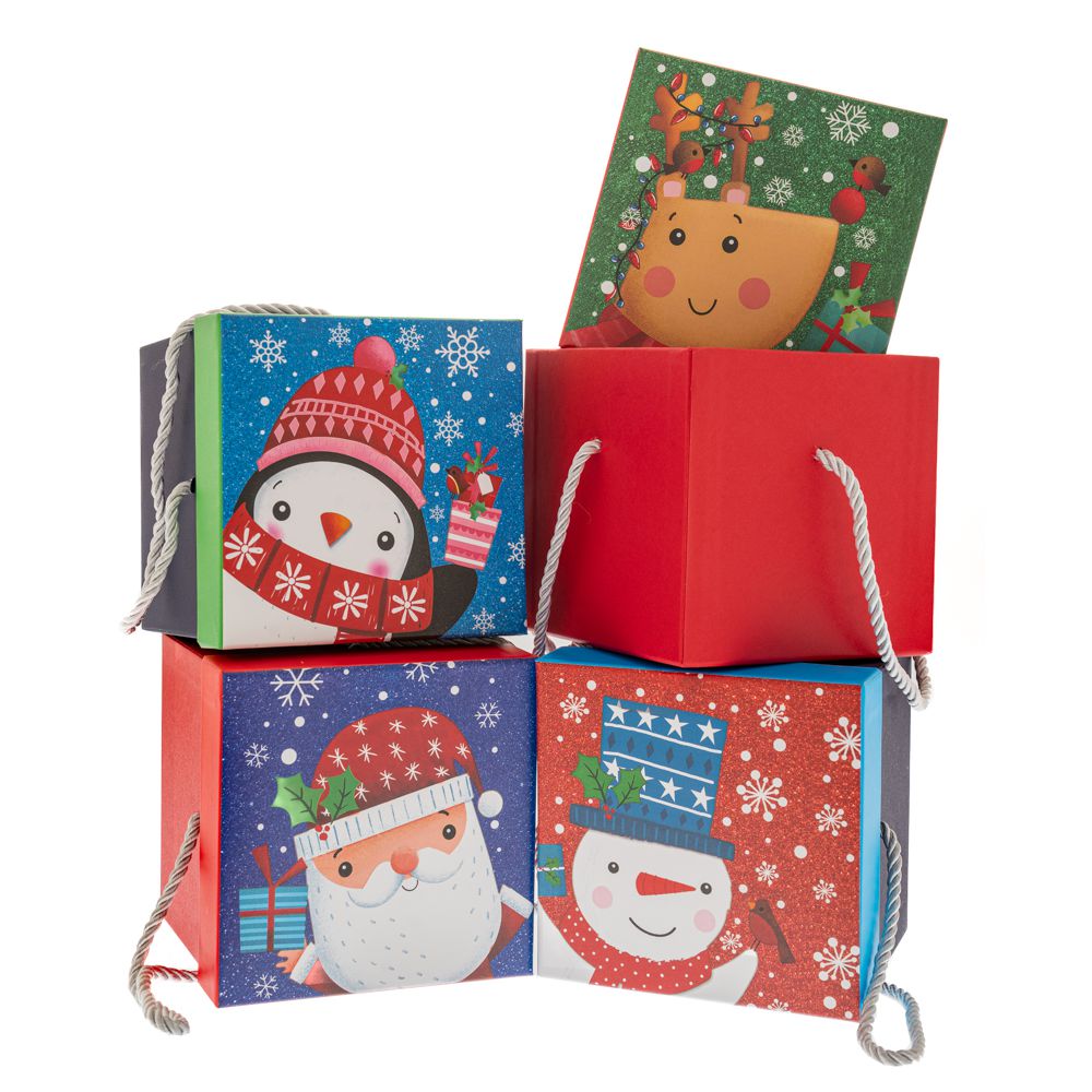 ΧΑΡΤΙΝΟ ΤΕΤΡΑΓΩΝΟ ΚΟΥΤΙ ΜΕ ΧΡΙΣΤΟΥΓΕΝΝΙΑΤΙΚΟ ΣΚΗΝΙΚΟ 13Χ12,5ΕΚ 4 ΣΧΕΔΙΑ