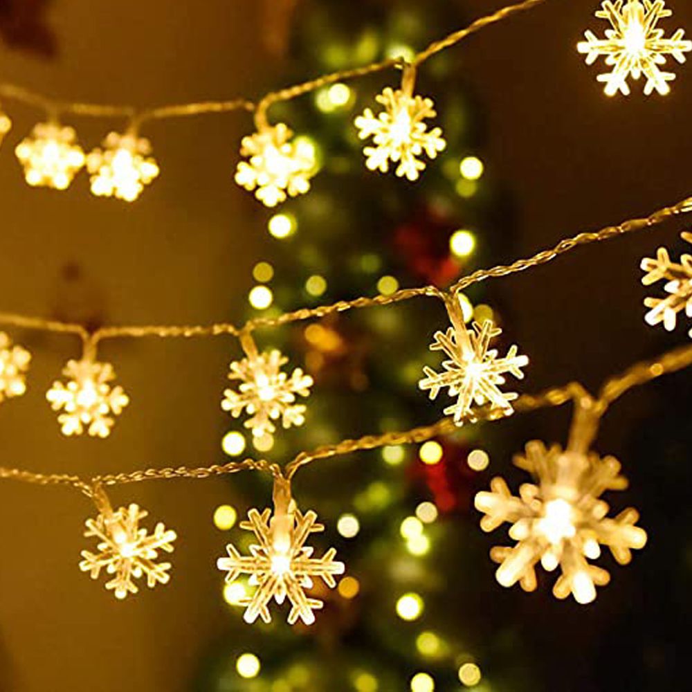 Εσωτερικού και εξωτερικού χώρου με ακρυλικές νιφάδες. 50 νιφάδες σε σειρά ανά 10εκ, μήκος 5 μέτρα +3μέτρα για μπρίζα. Αναβοσβήνει με 8 προγράμματα λευκό φως με διάφανο καλώδιο. Δεν επεκτείνεται. Συσκευασία σε πλαστικό δοχείο με καπάκι.